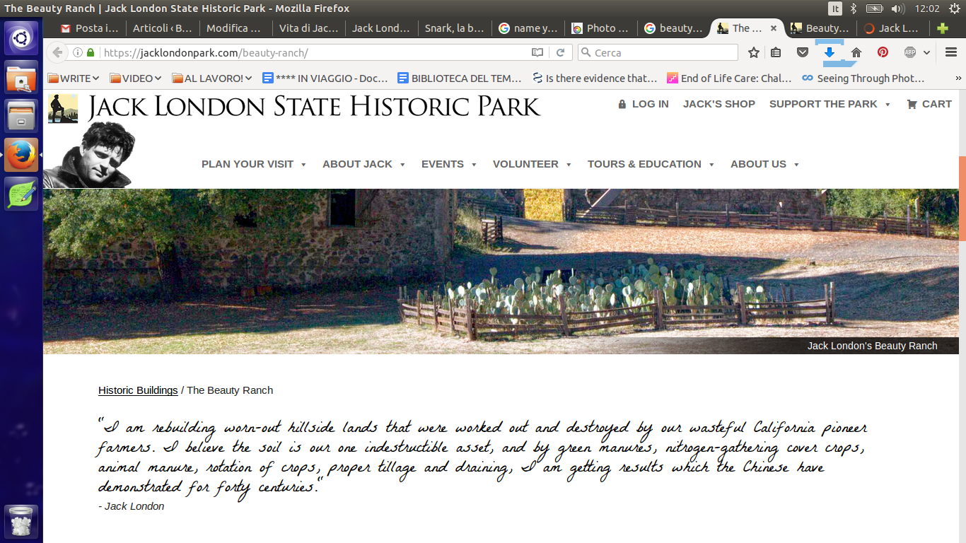 Nel 1904 Jack London è in Corea come corrispondente della guerra russo-giapponese. Arrestato più volte, infine gli viene rilasciato un permesso che gli consente di viaggiare insieme all’esercito imperiale giapponese, diretto verso il luogo della battaglia di Yalu. Tuttavia, il presidente Theodore Roosevelt dovrà impegnarsi personalmente in suo favore per facilitarne il rilascio, dopo che lo scrittore aggredisce i compagni di viaggio giapponesi con l’accusa di aver rubato la biada del suo cavallo. A giugno lascia il fronte e nel 1905 compra mille acri di terreno a Glen Ellen, California: è l’inizio del Beauty Ranch. In realtà, il primo edificio che si tentò di costruire sulla proprietà, Wolf House, venne distrutto da un incendio e oggi i resti di questi muri di pietra fanno parte del Jack London State Historic Park, attualmente monumento storico nazionale protetto, dove la moglie iniziò a raccogliere oggetti e testimonianze dello scrittore dopo la sua improvvisa morte.